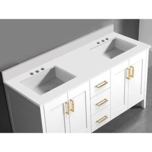 Madeli Quartzstone Countertop, 60” X 18” X 3/4”, Double Basin, 8” Widespread Faucet Holes In