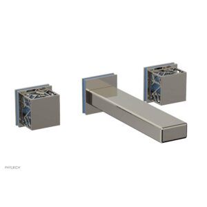 Phylrich Polished Nickel Jolie Wall Faucet With Rectangular Spout, Square Cutaway Handles, And Light Blue Accents – 1.2gpm