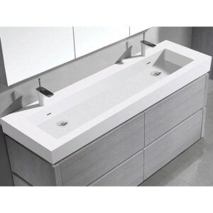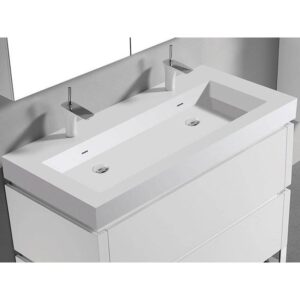 Madeli X-stone Trough Sink, 48” X 22” X 4-1/2”, 8” Widespread Faucet Holes