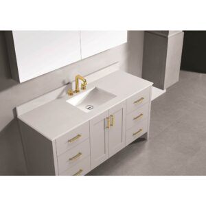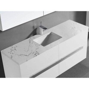 Madeli Quartzstone Countertop, 60” X 18” X 3/4”, Single Basin, 8” Widespread Faucet Holes In