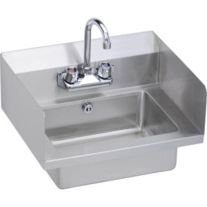 Elkay Hand Sink, 18×15 Oa, 14x10x5 Bowl, Side Splashes, Lever Waste, Overflow, P-trap, Faucet, 18 Ga 300 Series Ss, Nsf