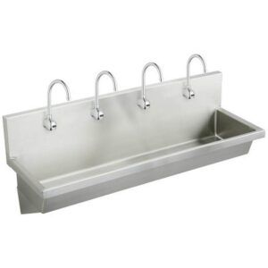 Elkay Stainless Steel 96” X 20” X 8” Wall Hung Multiple Station Hand Wash Sink Kit W/ Sensor Faucets + Grid Drain
