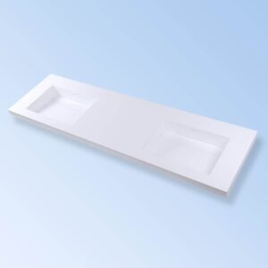 Lacava Vanity-top Double Bowl Bathroom Sink Made Of Solid Surface, With An Overflow And Decorative Drain Cover, With 00-no Faucet Holes, 01-one Faucet Hole, 02-two Faucet Holes (center And Right) Or 03-three Faucet Holes In 8” Spread