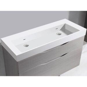Madeli X-stone Trough Sink, 42” X 22” X 4-1/2”, 8” Widespread Faucet Holes