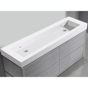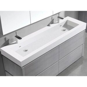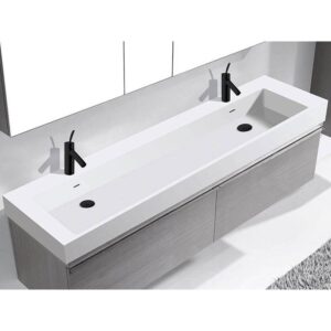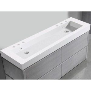Madeli X-stone Trough Sink, 60” X 22” X 4-1/2”, 8” Widespread Faucet Holes
