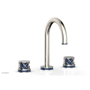 Phylrich Polished Chrome Jolie Widespread Lavatory Faucet Faucet With Gooseneck Spout, Round Cutaway Handles, And Navy Blue Accents – 1.2gpm