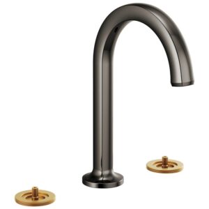 Phylrich Satin Brass Jolie Widespread Lavatory Faucet Faucet With Gooseneck Spout, Round Cutaway Handles, And Black Accents – 1.2gpm