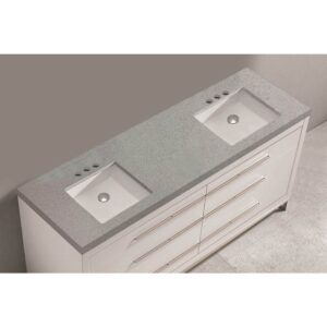 Madeli Quartzstone Countertop, 60” X 22” X 3”, Double Basin, 8” Widespread Faucet Holes In