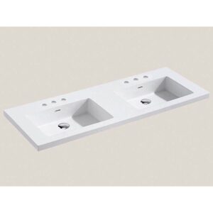 Madeli X-stone Top/basin, 48” X 22” X 2”, Double Basin, Glossy , 8” Widespread Faucet Holes