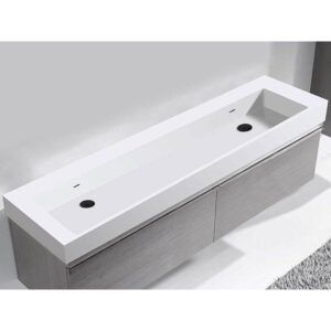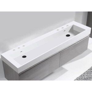 Madeli X-stone Trough Sink, 72” X 22” X 4-1/2”, 8” Widespread Faucet Holes