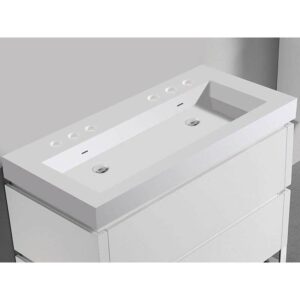 Madeli X-stone Trough Sink, 48” X 22” X 4-1/2”, 8” Widespread Faucet Holes