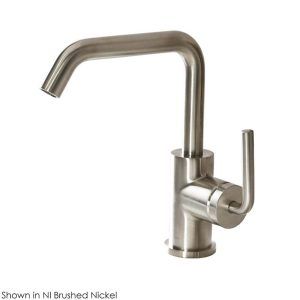 Lacava Deck-mount Single-hole Faucet With A Squared-gooseneck Swiveling Spout, One Curved Lever Handle, And A Pop-up Drain.
