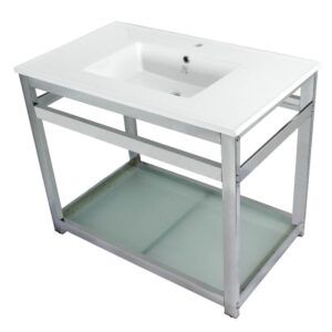 Kingston brass Fauceture Vpb39171st New Haven 39” Porcelain Console Sink With Stainless Steel Legs (single-hole), White/polished Chrome