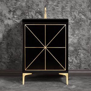 Linkasink Divergence 24” Wide Black Vanity With Hand Applied Metal Leaf And Satin Brass Hardware, 24” X 22” X 33.5” (without Vanity Top