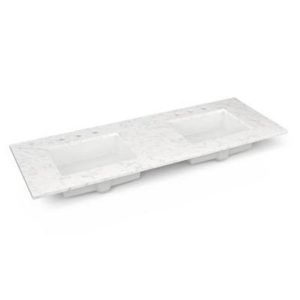 Robern Engineered Stone Vanity Top, 61” X 22” X 3/4”, Double Undercounter Sink, White Zeus Extreme, Three Hole