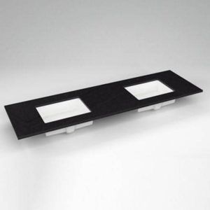 Robern Engineered Stone Vanity Top, 73” X 22” X 3/4”, Double Undercounter Sink, Lava Black, Three Hole