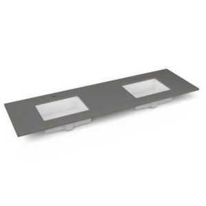 Robern Engineered Stone Vanity Top, 73” X 22” X 3/4”, Double Undercounter Sink, Stone Gray, Single Hole