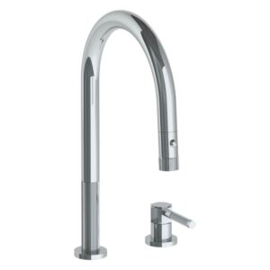 Watermark Deck Mounted 2 Hole Gooseneck Kitchen Faucet With Pull Down Spray
