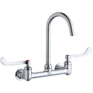 Elkay Scrub/handwash 8” Centerset Wall Mount Faucet W/4” Gooseneck Spout 6” Wristblade Handle 1/2” Offset Inlets+stop