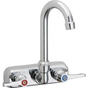 Elkay 8” Centerset Deck Mount Laminar Flow Faucet With 5” Gooseneck Spout 6” Wristblade Handles 1/2” Offset Inlets