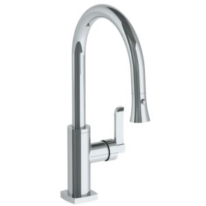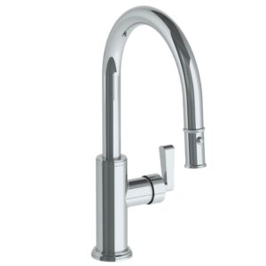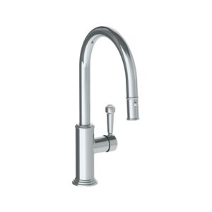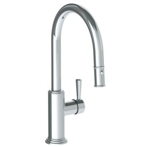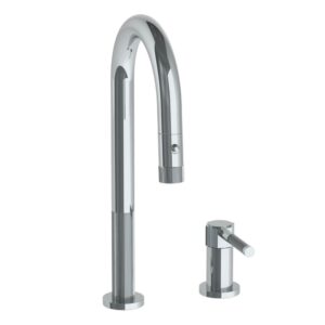 Watermark Deck Mounted 1 Hole Gooseneck Kitchen Faucet With Pull Down Spray – Low Spout