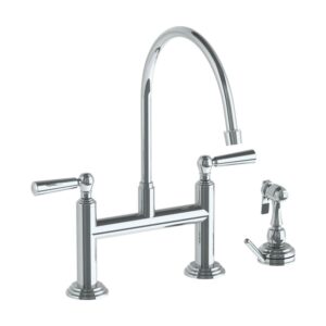 Watermark Deck Mounted Bridge Extended Gooseneck Kitchen Faucet With Independent Side Spray