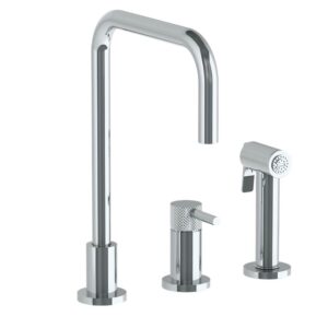 Watermark Deck Mounted 3 Hole Square Top Kitchen Set – Includes Side Spray