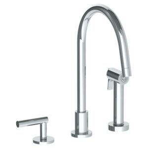 Watermark Deck Mounted 4 Hole Extended Gooseneck Kitchen Set – Includes Side Spray