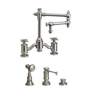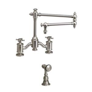 Waterstone Waterstone Towson Bridge Faucet – 12” Articulated Spout – Cross Handles W/ Side Spray