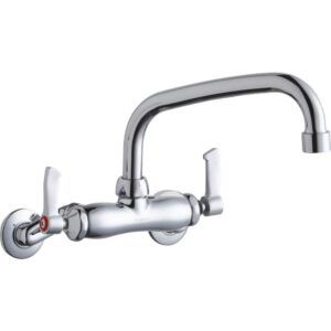 Elkay Foodservice 8” Centerset Wall Mount Faucet With 12” Arc Tube Spout 6in Wristblade Handles 1/2” Offset Inlets+stop