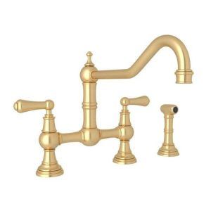 Rohl Edwardian™ Extended Spout Bridge Kitchen Faucet With Side Spray