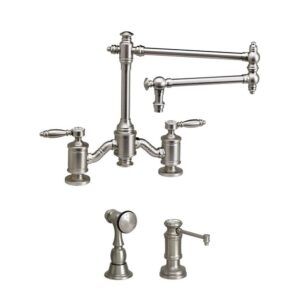 Waterstone Waterstone Towson Bridge Faucet – 18” Articulated Spout – Lever Handles W/ Side Spray