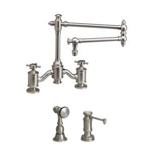 Waterstone Waterstone Towson Bridge Faucet – 18” Articulated Spout – Cross Handles – 3pc. Suite