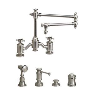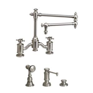 Waterstone Waterstone Towson Bridge Faucet – 18” Articulated Spout – Cross Handles – 4pc. Suite