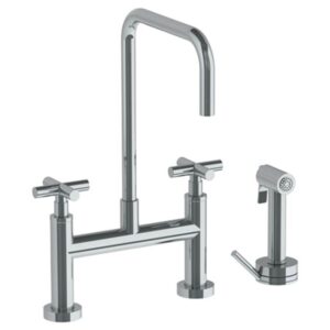 Watermark Deck Mounted Bridge Square Top Kitchen Faucet With Independent Side Spray