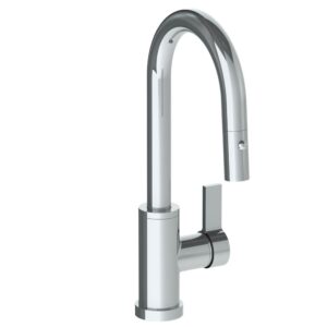 Watermark Deck Mounted 1 Hole Square Top Kitchen Faucet With Pull Out Spray – High Spout