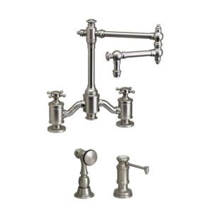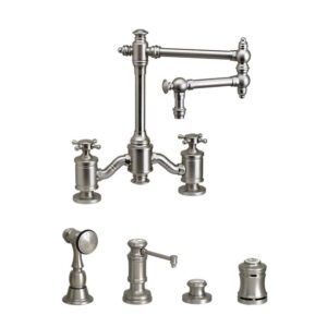 Waterstone Waterstone Towson Bridge Faucet – 12” Articulated Spout – Cross Handles – 4pc. Suite