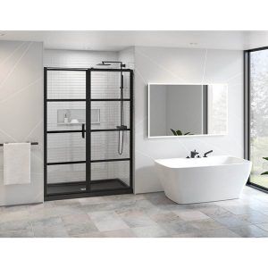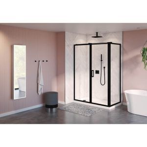 Fleurco Latitude Pivot In-line 60”w/79”h/8mm/mat Blk/clr/blk Stripe