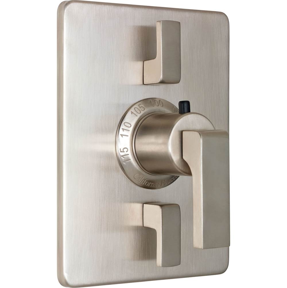 all brass construction; 100° F safety stop button with manual override; dual integral volume control; 7-7/8'' by 5-5/8'' flat rectangular faceplate; less head, arm, flange and spout