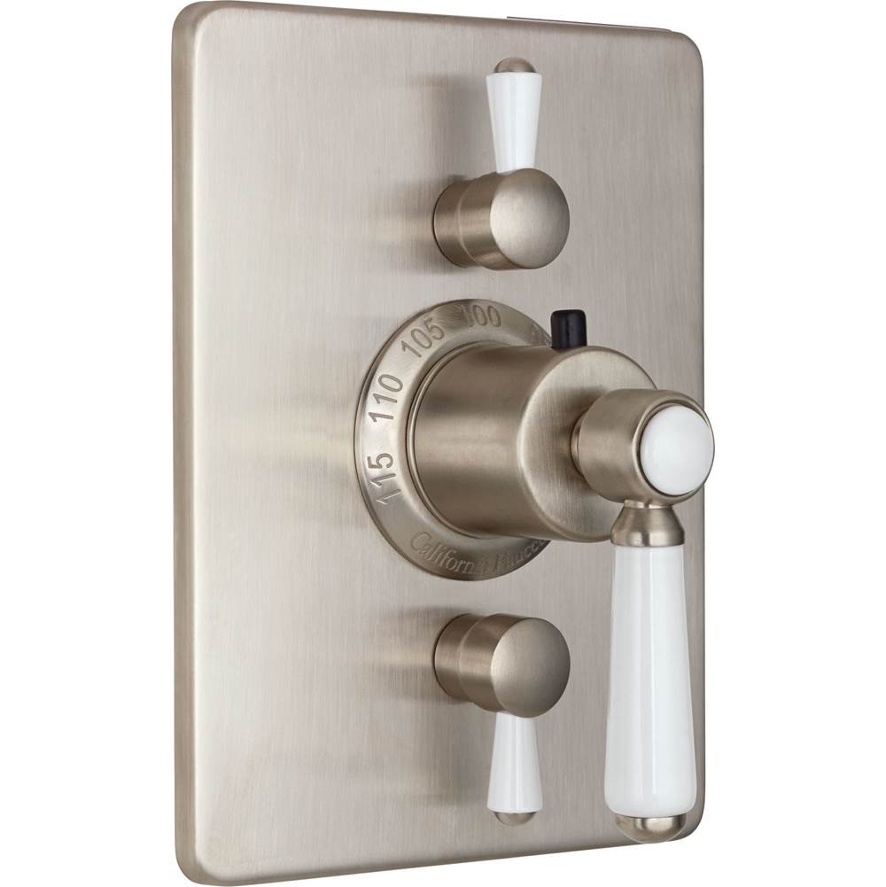 all brass construction; 100° F safety stop button with manual override; dual integral volume control; 7-7/8'' by 5-5/8'' rectangular faceplate; less head, arm, flange and spout