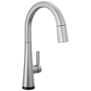 The Monrovia Kitchen Collection stands out in any space with its statuesque form and striking handle design. Touch it on. Touch it off. Whether you have two full hands or 10 messy fingers, Delta Touch2O Technology helps keep your kitchen faucet clean, even when your hands arent. A simple touch anywhere on the spout or handle with your wrist or forearm activates the flow of water at the temperature where your handle is set. The Delta TempSense LED light changes color to alert you to the waters temperature and eliminates any possible surprises or discomfort. You can install with confidence, knowing that Delta kitchen faucets are backed by our Lifetime Limited Warranty. Electronic parts are backed by our 5-year electronic parts warranty.