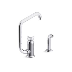 The KOHLER Billet kitchen and bar sink faucet collection is a marvel to behold. Paying homage to a casting heritage and legacy within Kohler, this collection reflects the raw and natural beauty of industrialization. This style melds with a unique two-function aerator to supply two options for spray function with a simple twist of the end of the deck-mount bar sink faucet spout. The faucet also includes a convenient coordinating side sprayer.