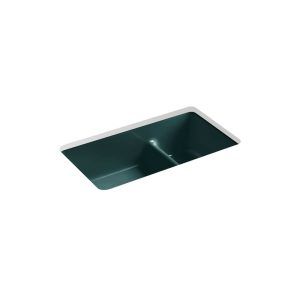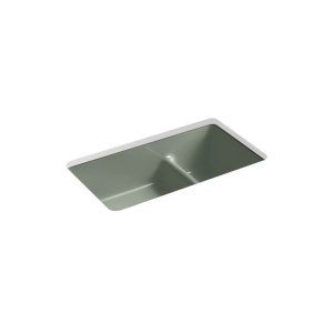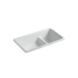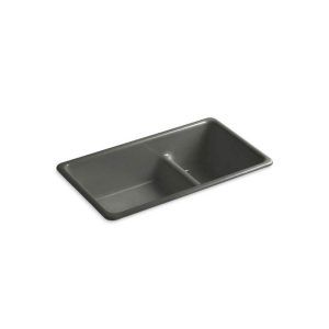 The KOHLER Iron/Tones sink offers a simple design that is equally at home in modern or traditional kitchens. The large/medium bowls allow you to keep clean and dirty dishes separate while offering plenty of room for oversize pots and pans. A low barrier divides the two compartments, making it easy to wash and rinse large items while still keeping the two basins separate. Crafted from enameled cast iron, this smart divide 33” top-/undermount double-bowl kitchen sink resists chipping, cracking, or burning for years of beauty and reliable performance.