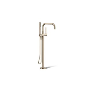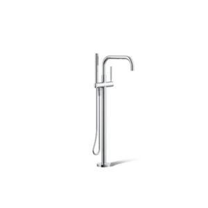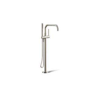 KOHLER Purist bathroom faucets and accessories combine simple, architectural forms with sensual design lines. Featuring this modern, minimalist style, the Purist floor-mount bath filler trim complements a wide variety of freestanding baths. This freestanding bathtub faucet with handshower brings sophistication to your bathroom with a defined profile and sleek, integrated handshower.