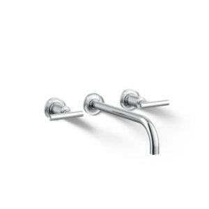 Capturing the style of minimalist design, KOHLER Purist faucets deliver streamlined water control. This wall-mount bathroom sink faucet trim features a 90 angle spout and lever handles for easy operation. The convenient wall-mount design provides a clutter-free countertop in your bath or powder room. When paired with a two-handle ceramic disc valve, this trim offers optimal performance. Combine it with bath accessories from the Purist collection for a distinctively modern and unified decor.
