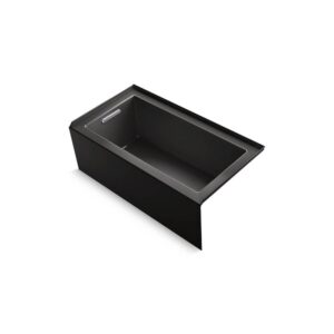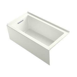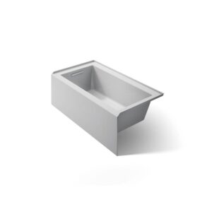 With a crisp, minimalist design, KOHLER brings refined style to your bathroom with the KOHLER Underscore alcove bath. The gently sloped backrest offers ergonomic comfort, while the slotted overflow allows for a deeper soak, creating a truly relaxing bathing experience. Designed for easy installation in a standard alcove, this 60” x 32” rectangular alcove soaking tub features an integral apron and a left-hand drain to suit your space. This contemporary silhouette makes it a versatile centerpiece for modern bath environments.