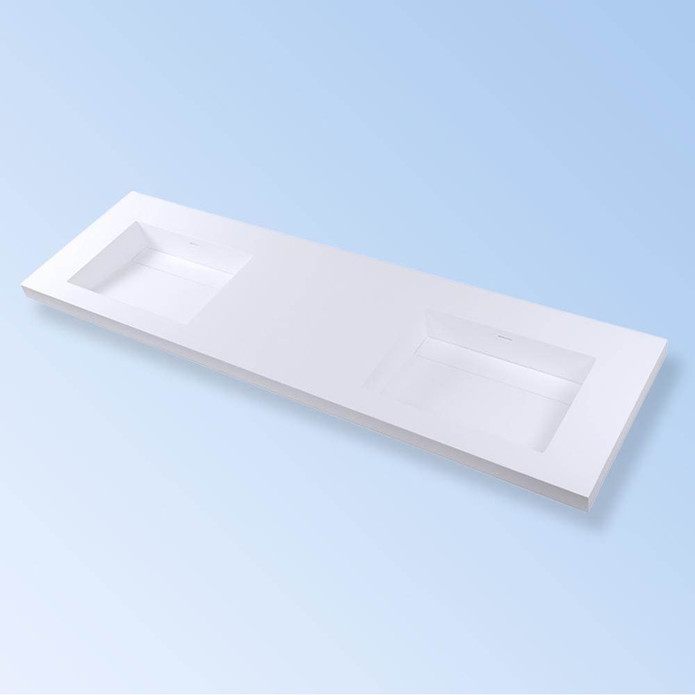 Lacava Vanity-top Double Bowl Bathroom Sink Made Of Solid Surface, With An Overflow And Decorative Drain Cover, With 00-no Faucet Holes, 01-one Faucet Hole, 02-two Faucet Holes (center And Right) Or 03-three Faucet Holes In 8” Spread