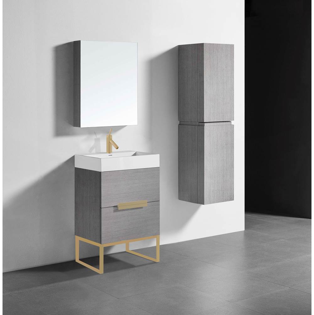 Madeli Madeli Soho 24” Free Standing Vanity Cabinet In Ash Grey/hw: Satin Brass(sb