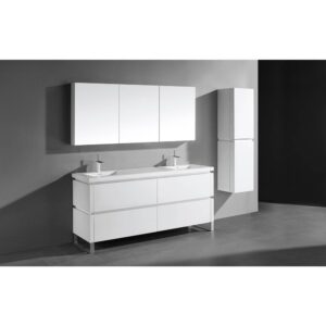 Featuring straight lines and sophisticated design, the Metro Collection offers Italian-style integrated continuous handles, a larger than average 28” height for extra storage space, deep drawers with full 18”-extension Grasshopper soft-closing glides and concealed interior drawers. Choose from a rich Walnut or Ash Grey woodgrain or a Glossy White polyurethane-protected finish. Choice of countertops and basins include X-Stone solid surface, Quartzstone and a pristine glass top with ceramic bowls in White or Biscuit. Available with your choice fo the simple L-feet or open rectangular S-feet in polished chrome or brushed nickel, the Metro”s sleek, modern lines coupled with its unprecedented storage space are the fullest embodiment of Madeli”s Functional Elegance motto.