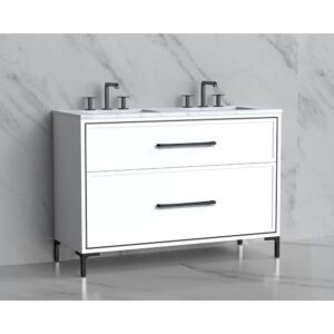 Madeli Profile 48d” Free Standing Vanity Cabinet In White/hw: Satin Brass(sb